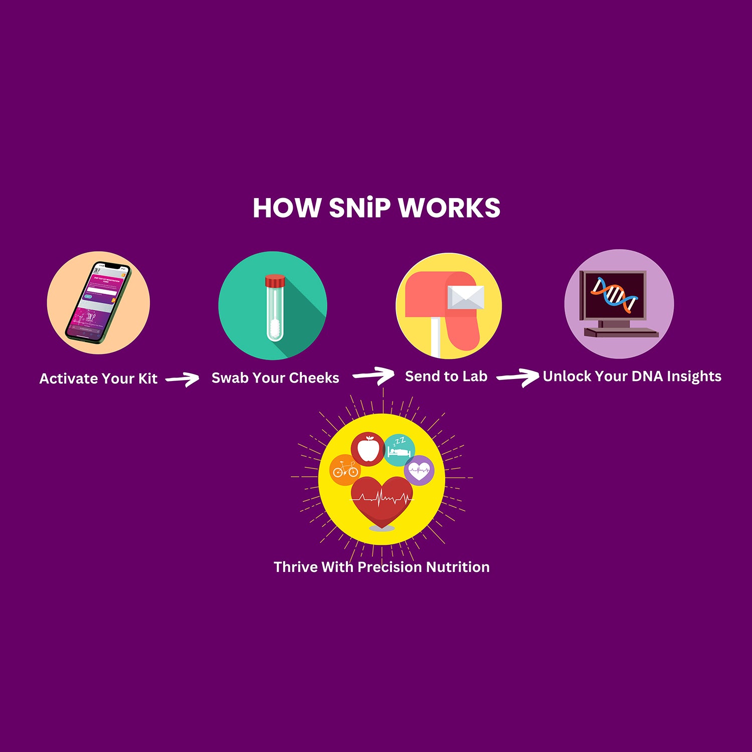 SNiP DNA Nutrition Test — unlock the power of your DNA to create a personalized nutrition plan built around your unique genetic blueprint. Get the insight, guidance, and customized support to eat smarter and fuel your body better.